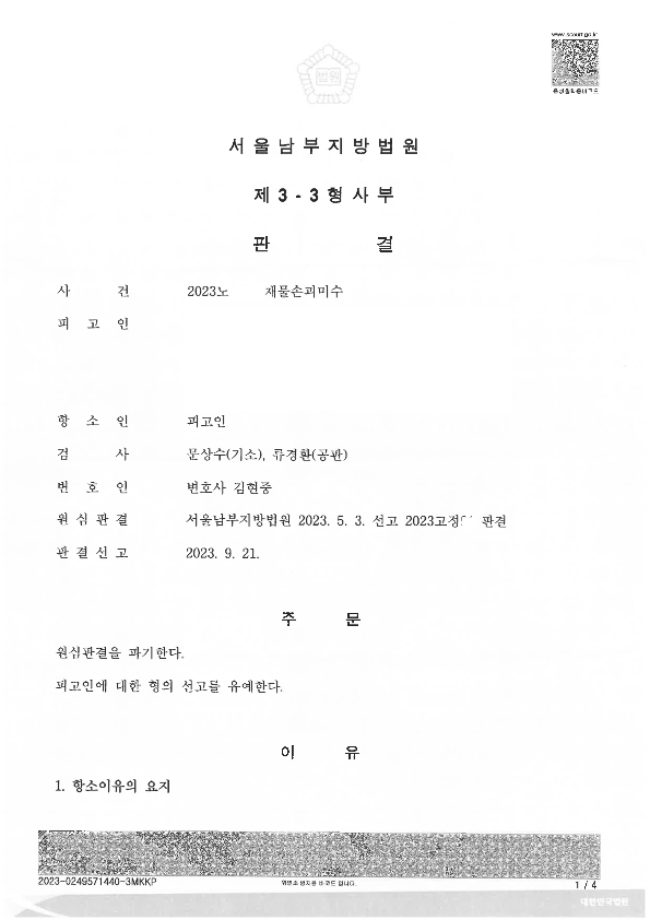 ****판결문을 보시면 아시겠지만 변호인으로서 제 이름만 들어가 있는 것을 확인하실 수 있습니다. 제가 온전히 혼자서 이끌어 낸 사례만을 저의 해결사례로 올리는 것이니 참고 바라며, 고용 변호사가 처리한 사건에서 제 이름만 들어간 사례라던 가 다른 변호사들과 함께 처리한 사건에서 제 이름이 들어갔다는 이유로 자신의 독자적인 해결사례인 것처럼 올리지 않습니다. 또한 착오가 없는 이상, 기존에 올렸던 해결사례를 일정 기간이 지난 후에 새로운 해결사례인 것처럼 재차 업로드 하지 않습니다. ****
