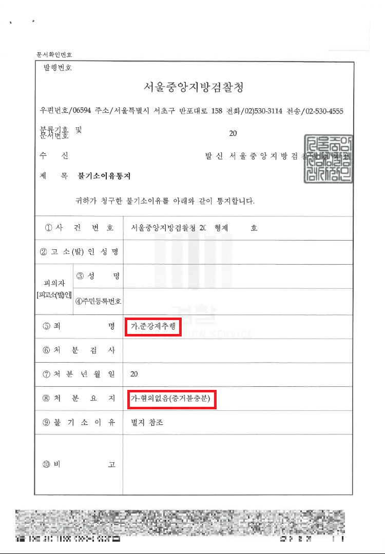 본 사건은 죄명이 중한 관계로 중한 형이 선고될 우려가 있었습니다. 그러나, 변호인과 의뢰인은 신속히 추가 증거 확보와 변호인 의견서 제출을 통해 적극적으로 대응하여 마침내 혐의없음처분을 받을 수 있었습니다.