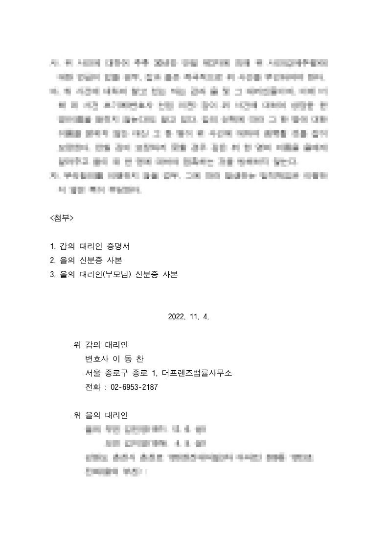 추후 본 법률사무소는 가해자측과 피해자측 사이를 원만히 중재하여, 가해자가 피해자에게 서면으로