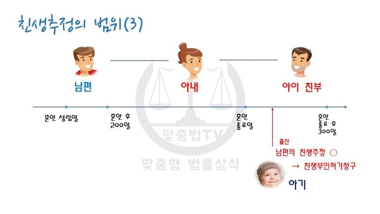 그래서 부부가 정상적인 혼인관계를 유지하고 있다는 것을 전제로 가정의 평화를 위해 아내가 낳은 아이는 남편의 아이로 법률상 추정합니다. 이를 친생추정이라고 합니다.