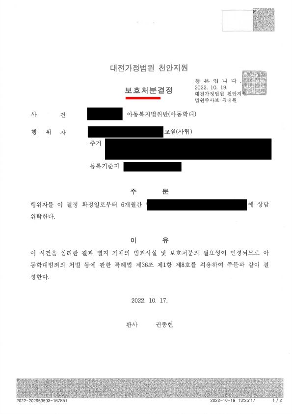 재판부는 이동규변호사의 주장을 받아들여 사건 성격상 받기 어려운 아동보호처분을 부과하는 것으로 사건을 종결하였습니다.
