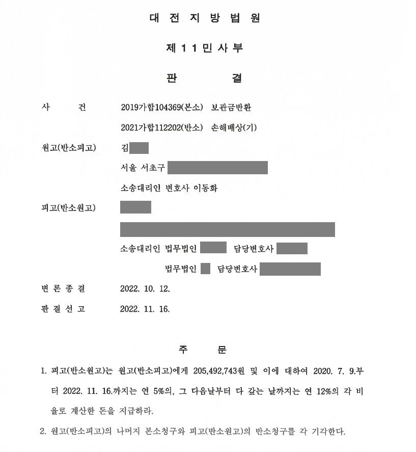7. 본 변호사는, 원고의 관련 사건들을 종합적으로 검토하여, 해당 사건 판결문 및 증거를 일일이 확인하여 이 사건에 유리한 증거를 제출하며 주장에 근거를 더하고, 상대방이 제출한 증거에 대하여는 일부 위조된 사실을 밝히는 등 상대방 주장의 근거를 탄핵하여, 재판부로 하여금 원고에게 유리하게 판단할 수 있도록 소송을 이끌어 승소판결을 받아냄.