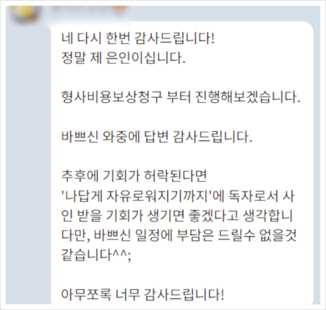 전과자라는 낙인도, 수백만 원 이상의 손해배상금도 모두 책임지지 않고 평온한 일상을 되찾으실 수 있을 거라 생각합니다.