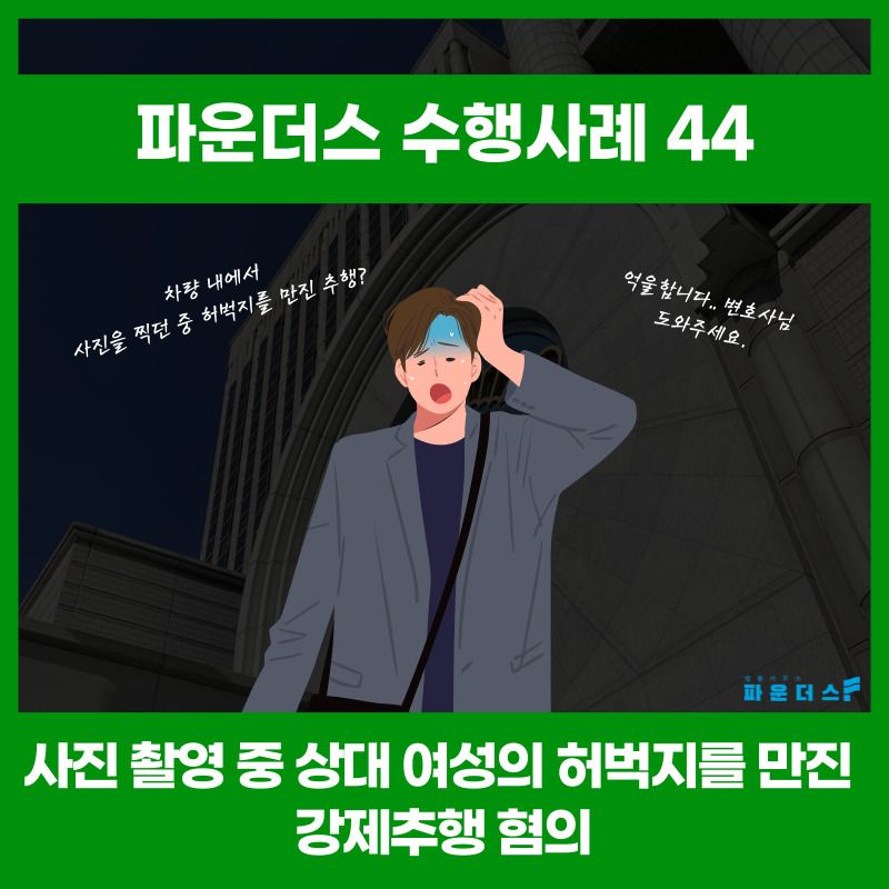 A 씨의 주장은 차량 내에서 함께 촬영을 할 당시 의뢰인이 A 씨의 허벅지를 만졌다는 것으로 강제추행으로 고소를 하게 되었다는 것인데요.