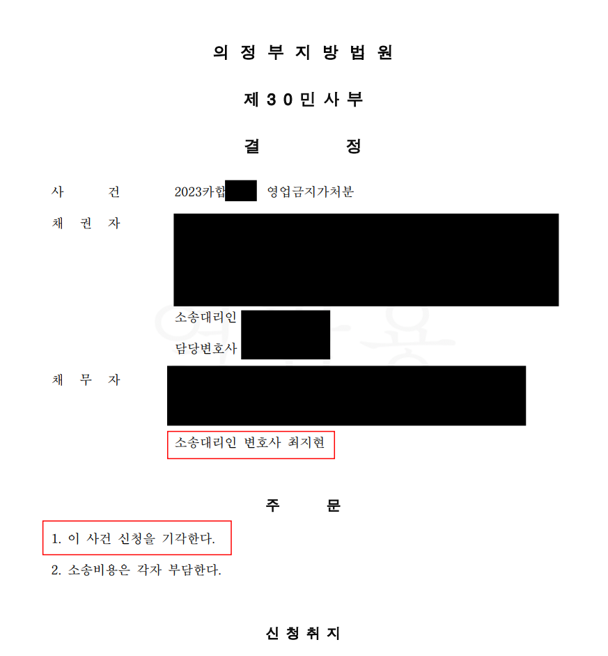 만약 이러한 "영업금지 가처분"과 같은 법적 분쟁의 당사자가 되신 경우, 반드시 전문가의 조력을 받아 사건을 해결하시기를 권고 드립니다.