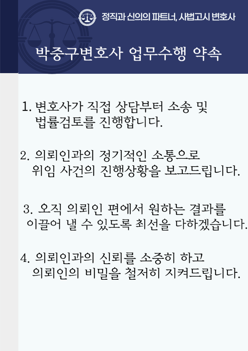 박중구 변호사는 업무수행에 관하여 다음 사항을 약속드립니다.