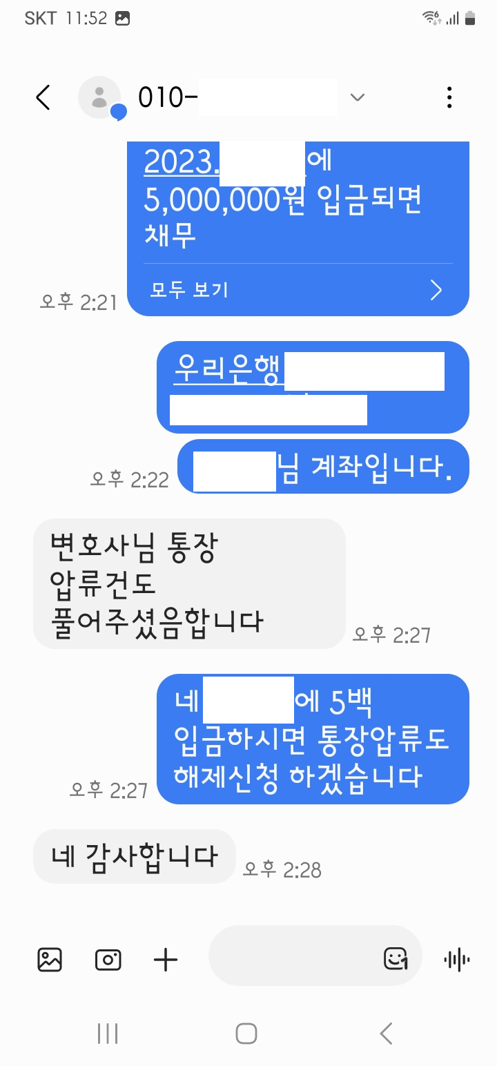 저는 즉각 입금 받은 자를 피고로 하여 민사소송 부당이득반환청구소송을 제기하였고 법원은 원고 승소 판결을 선고하여 확정 후 바로 강제집행을 개시하였으며 피고는 저희에게 연락하여 분납을 요청하여 저희는 피고로부터 피해액을 분납받고 강제집행을 해제해 주었습니다.