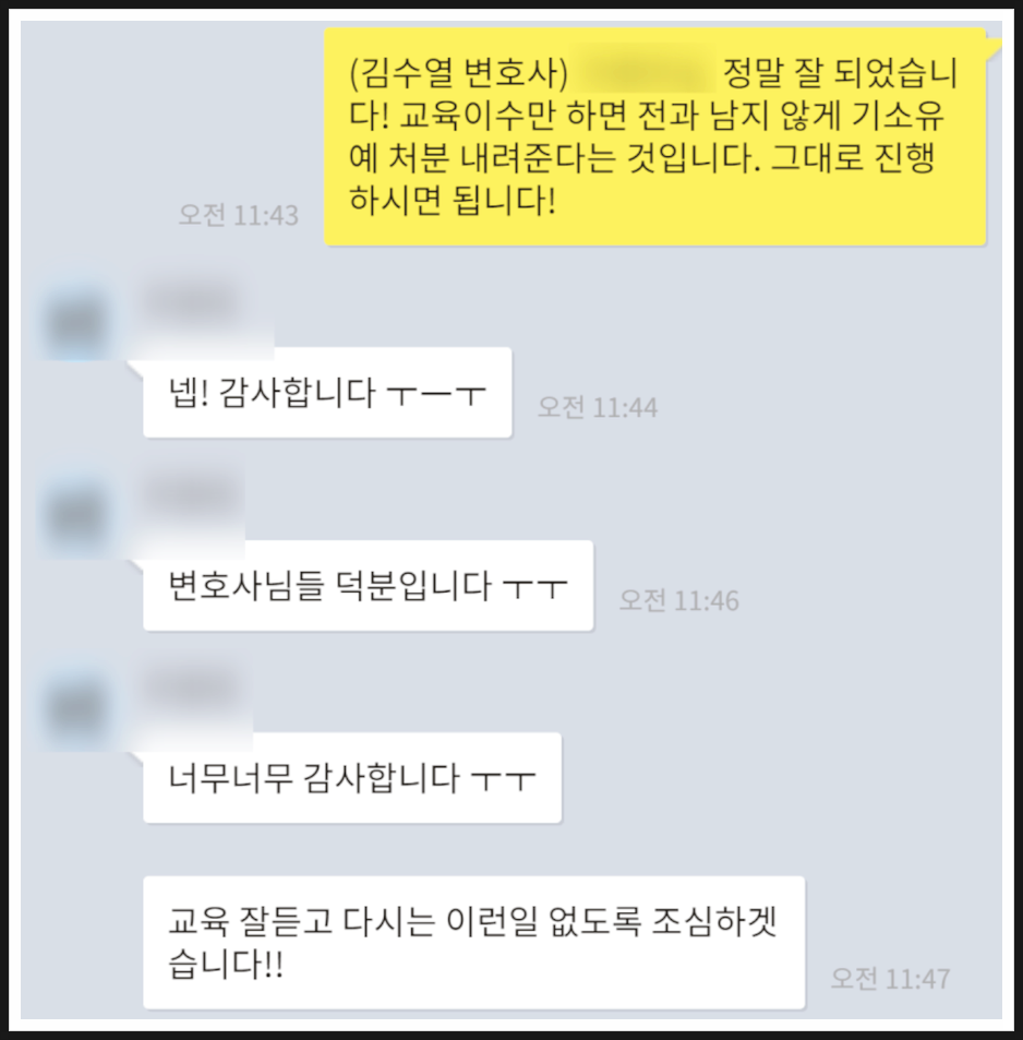 실제로 이러한 과정을 통해 저희가 '랜덤채팅 기소유예'라는 결과를 이끌었기에 여러분께