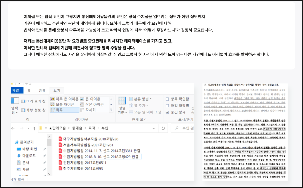 실제로 저희 또한 2,000건의 상담 경험과 변호 경험을 통해 쌓아온 데이터 베이스,