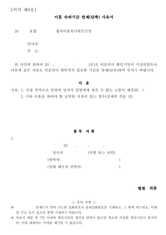 - 이혼 숙려기간 면제(단축) 사유서 제출과 인용여부 등
