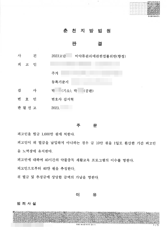 이번에는 마약류관리법 위반으로 집행유예를 선고받은 후 집행유예 기간 중에 다시 필로폰(메스암페타민)을 매수/투약 하여 체포되었던 의뢰인을 도와드린 사례를 소개드립니다.