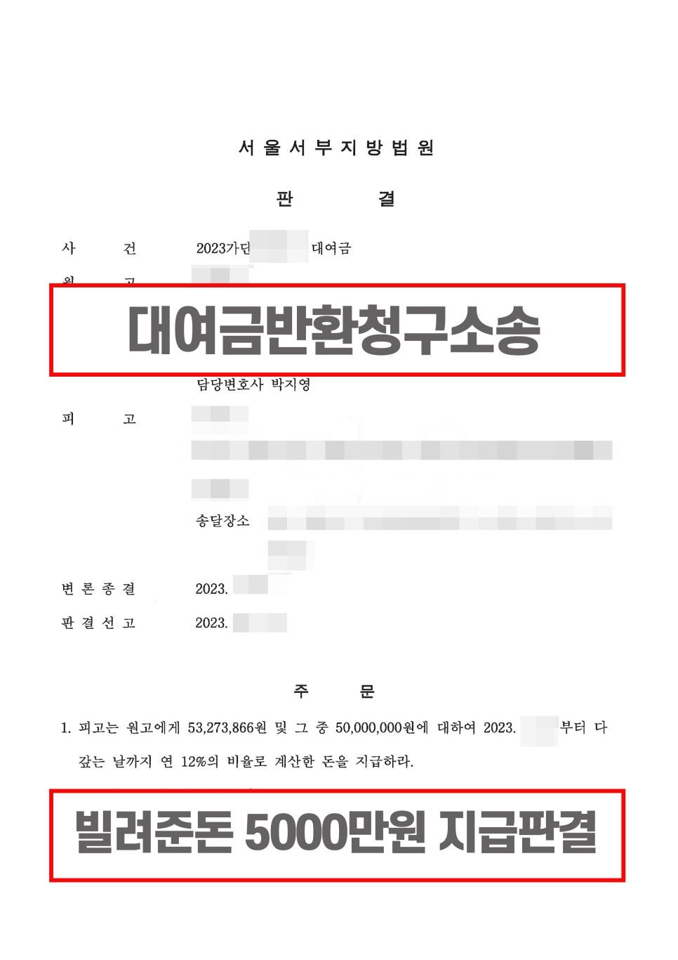오늘 소개해드릴 사례는 대여금 소송 통해 빌려주었던 5천여만원을 돌려받은 이야기를 하려고 합니다.