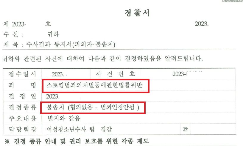 경찰은 본 변호인의 주장을 전부 받아들였고, 변호인 의견서를 제출한 지 4일만에 불송치결정을 내려주셨습니다.