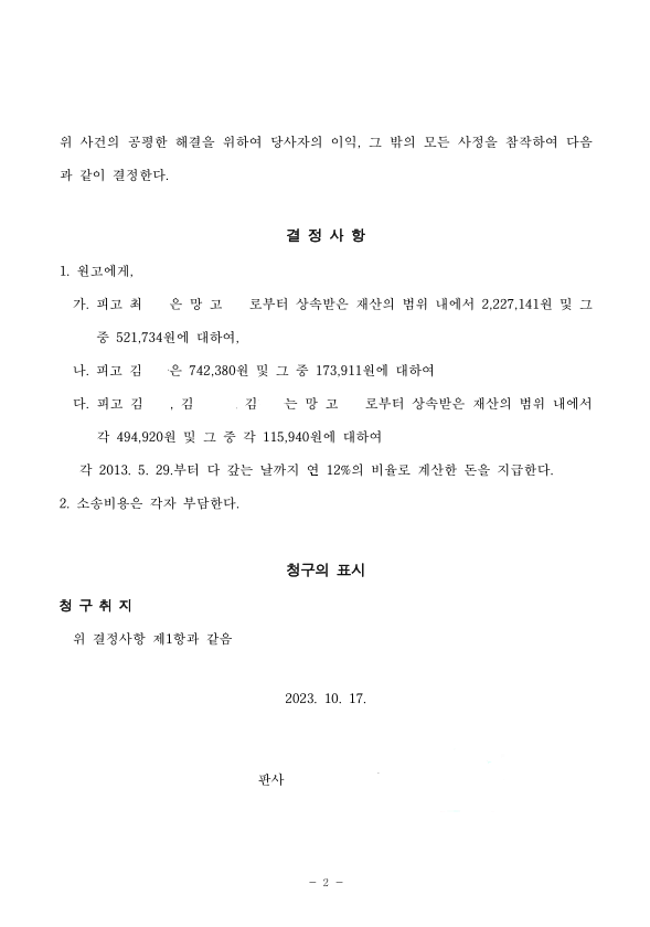 그 후 A, B, C는 2023년 2월경 엠메이드대부 유한회사로부터 소장을 받게 되었는데, "A, B, C는 외삼촌의 대습상속인들로서 상속지분에 따라 채무를 갚으라."는 내용이었습니다.