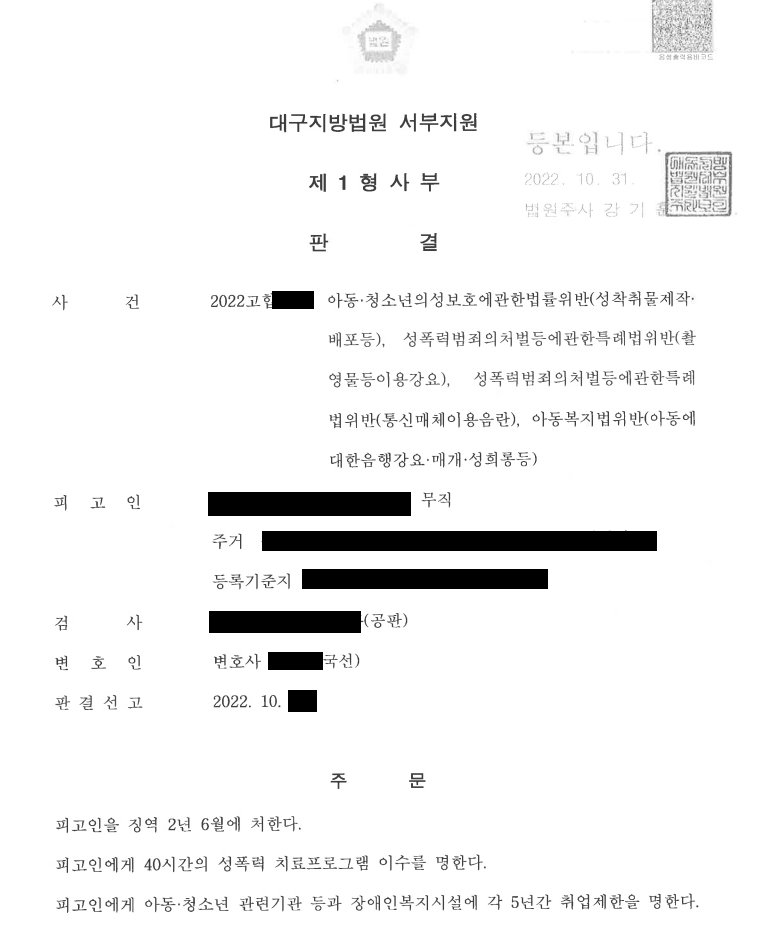 검찰의 수사를 통해 몇 명의 피해 아동이 추가로 존재하는 것이 밝혀졌으며, 다만 성착취가 오프라인으로 이어지지는 않았음도 확인할 수 있었습니다.