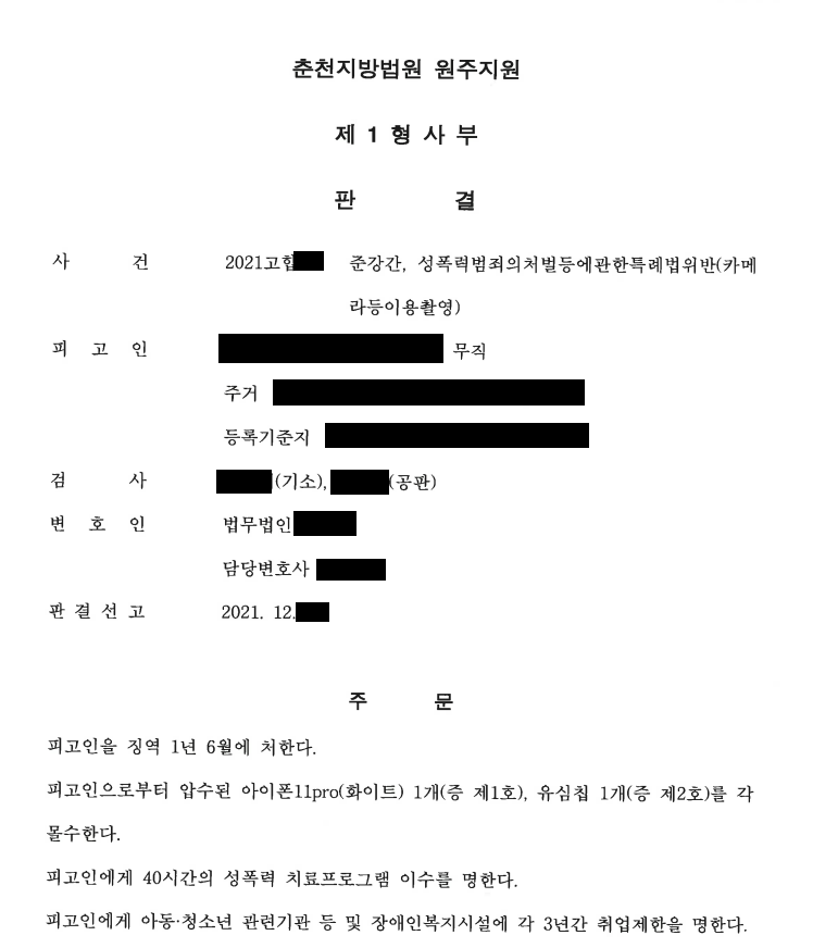 가해자에게는 징역 1년 6개월이 선고되었으며,