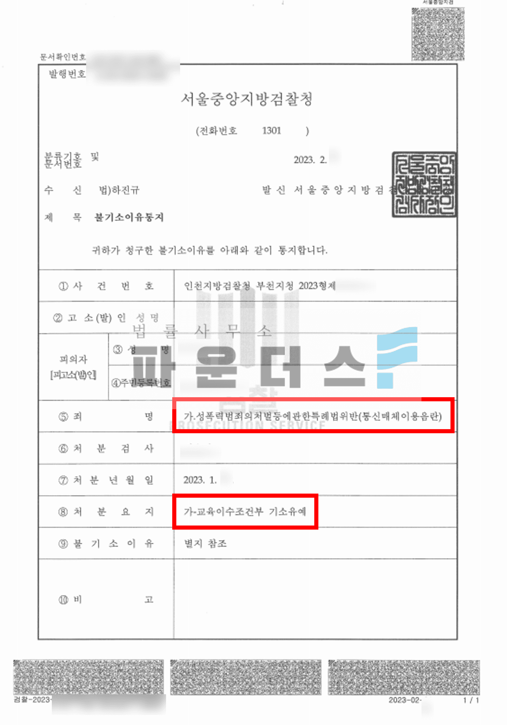 그 결과 의뢰인은 기소유예의 결과를 받을 수 있게 되었습니다.