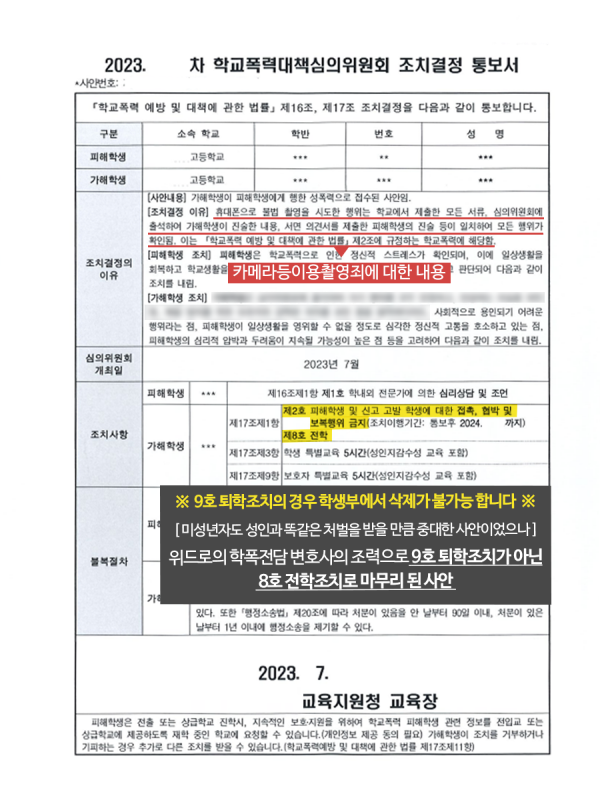 의뢰인의 가족들은 의뢰인이 이번 일로 퇴학처분을 받는 것은 아닌지 걱정이 매우컸는데, 위드로의 조력으로 전학 조치 결정을 받게 되면서 학업생활을 유지할 수 있었습니다.