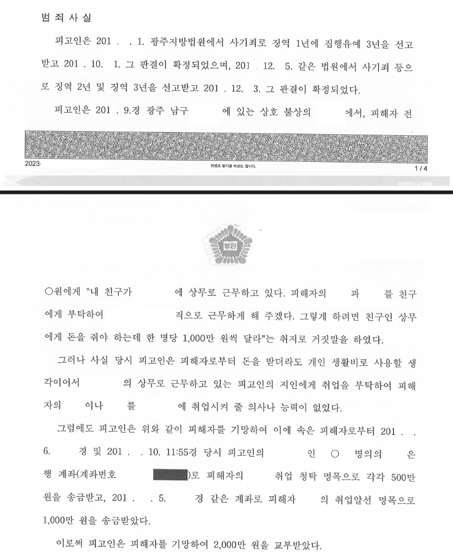 광주지방법원 2022고단1ㅁㅁ1 사기