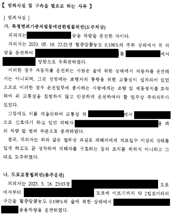 의뢰인은 주취상태로 운전을 하여 우회전 하던 중 교통섬에서 신호를 대기하고 있던 보행자를 충격하고 아무런 구호조치를 하지 않은 채 도주하였습니다. 의뢰인은 사고를 목격한 자의 신고를 받고 출동한 경찰관에게 긴급체포되어 특정범죄가중처벌등에관한법률위반(도주치상) 및 도로교통법위반(음주운전) 혐의로 입건되었습니다. 수사기관은 의뢰인에 대하여 상당한 수치의 혈중알코올농도와 도주경위 등을 토대로 구속영장의 청구를 신청하였고, 이에 의뢰인은 구속될 위기에 처하여 어려운 상황을 해결하고자 부유에 도움을 요청하였습니다.