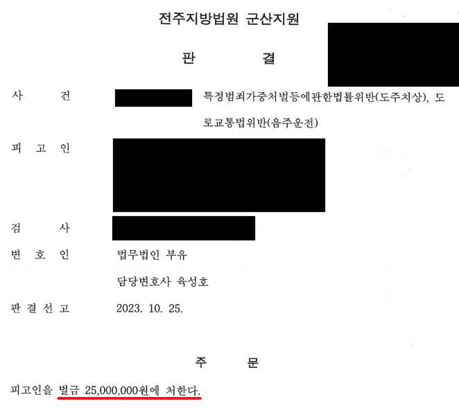 이와 같은 부유 변호인단의 사건의 객관적이고 명확한 진단을 통하여 철저하고 치밀한 전략을 바탕으로 대응한 결과, 벌금 2,500만 원의 형을 선고받아 의뢰인이 직장을 잃을 수 있는 위기의 상황을 헤쳐나갈 수 있었습니다.