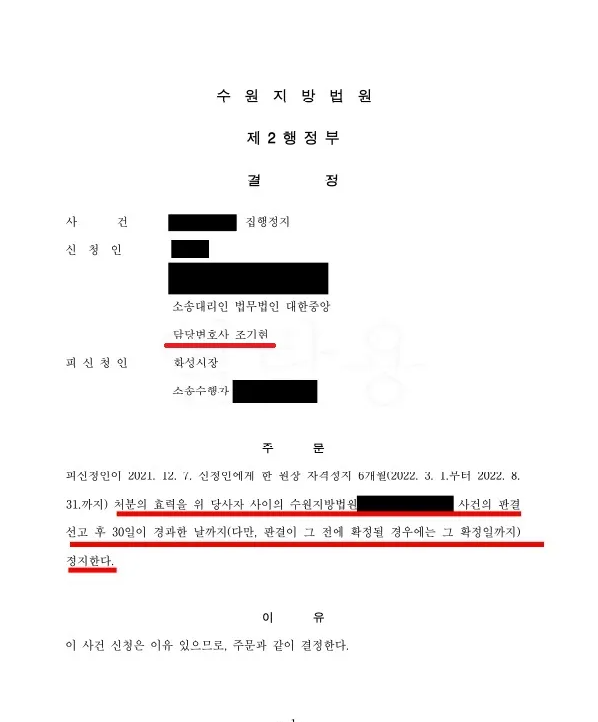 의뢰인은 형사사건에서 무혐의 불기소 처분을 받을 수 있었고 행정소송에서도 자격정지 처분을 취소한다는 결정을 받았습니다.