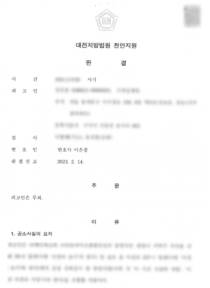 본 사례에서의 피고인께서도 사업을 하시던 분인데, 사업과 관련하여 업체에 돈을 일부 변제하지 못한 것이 있어 사기 혐의로 고소를 당했고 재판까지 하시게 된 분입니다.