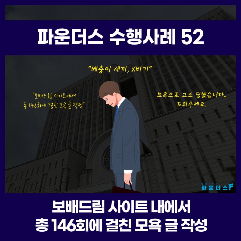의뢰인은 보배드림 사이트 내에서 타인을 향하여 총 146회에 달하는 악의적인 발언을 작성한 것으로 2인에 모욕죄로 고소를 당하였습니다. 수사기관의 연락을 받은 의뢰인은 파운더스 변호인의 조력을 요청하였습니다.