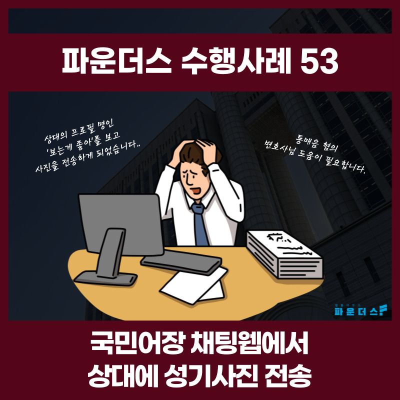 의뢰인은 랜덤채팅 어플 내에서 상대에 자신의 성기 사진을 전송하여 통매음으로 고소 당하였고 수사기관의 연락을 받은 이후 파운더스의 조력을 요청하였습니다.