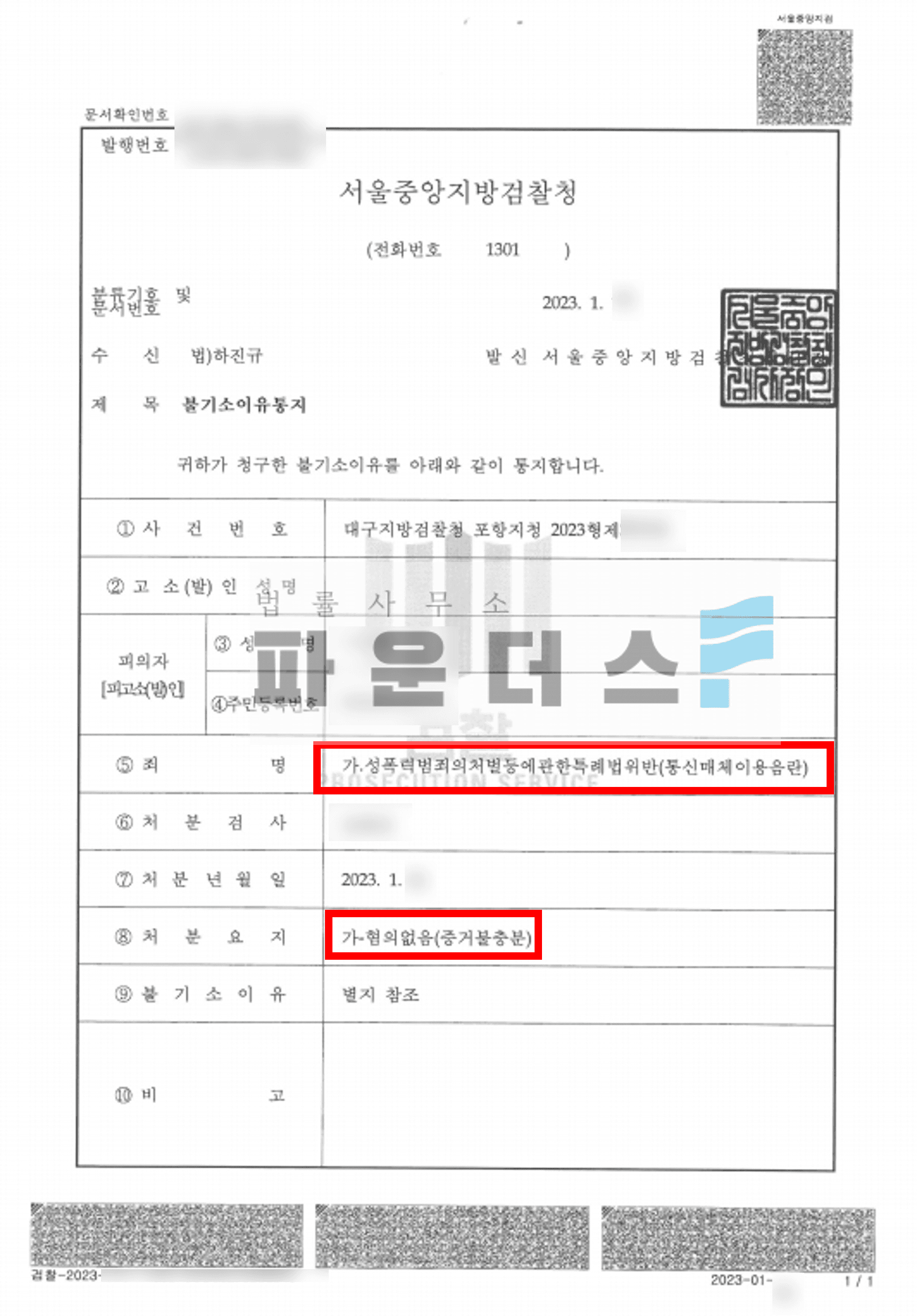 그 결과 의뢰인은 통매음 사건에 있어 혐의없음(증거불충분)으로 마무리 지을 수 있었습니다.