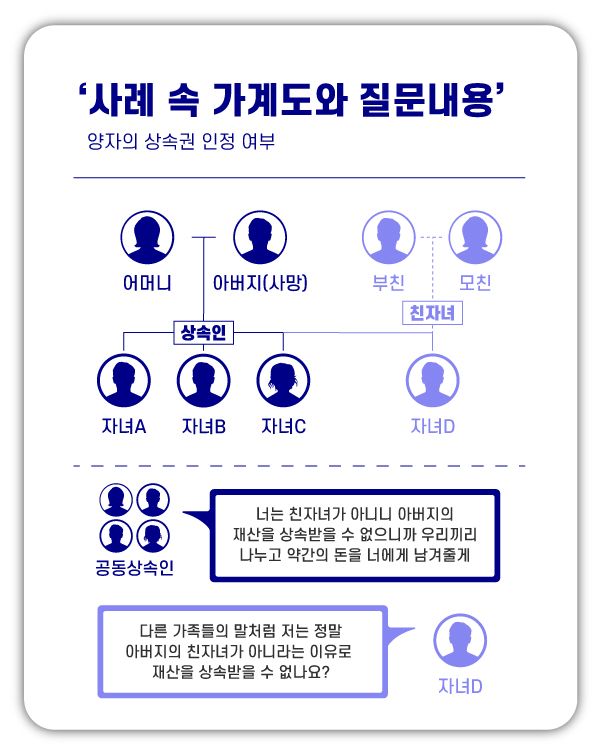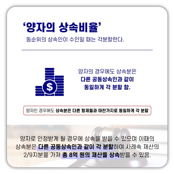 따라서 입양한 양자도 당연히 상속권이 있는데, 아래에 사례를 토대로 하여 좀 더 자세히 살펴보겠습니다.