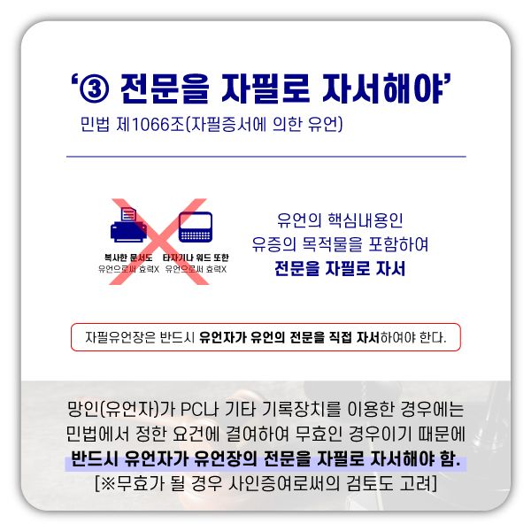 ③ 유언서 전문(全文)을 자필로 작성하지 않은 유언장