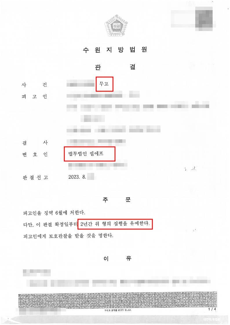 │LF는 피해자의 피해회복을 위하여 형사공탁 절차를 진행하였습니다. 또한 의뢰인이 범행을 자백하였고 깊이 반성하고 있음을 변론하였으며 변호인 의견서와 함께 의뢰인이 앓고 있는 정신질환에 대한 자료와 의뢰인의 양형자료를 제출하는 등의 조력활동을 통해 선처를 구하였습니다.