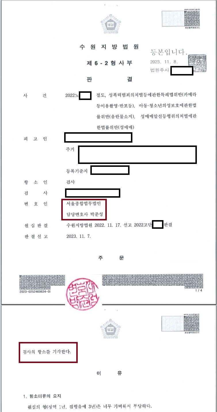 아청물 소지, 카메라촬영죄, 성매매, 절도 등, 성범죄의 종합세트로 기소되어 재판받는 상황이었기 때문에 진정한 위기 상황이었고 검사가 항소하여 항소심에서도 안심할 수 없는 상황이었습니다.