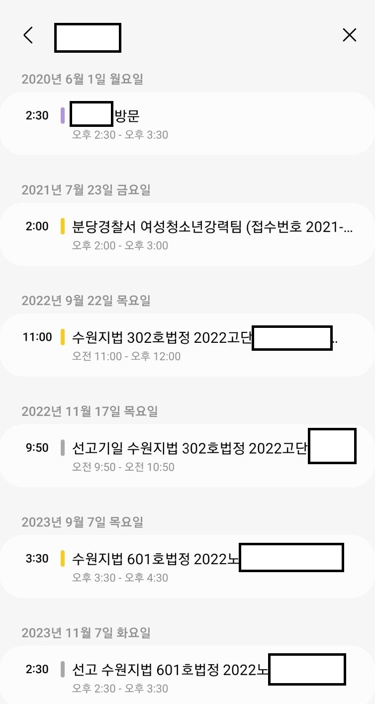 이 사건 의뢰인 님의 최초 방문일정 및 사건진행 스케줄 표시