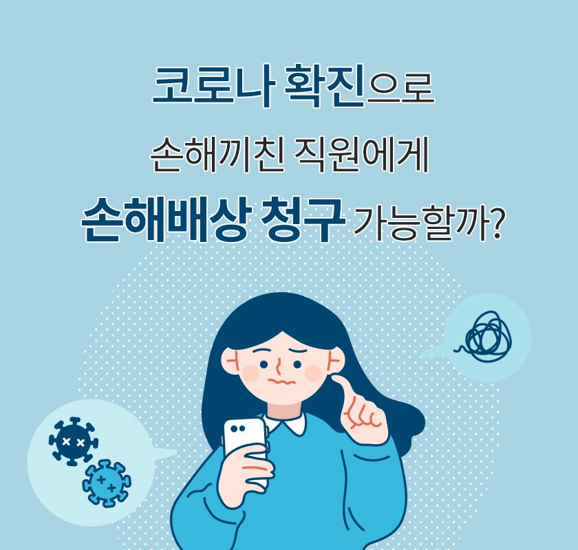 사업을 꾸려가는 입장에서는 하루라도 휴업을 하게 되면 손해를 보게 되고, 조금이라도 손해를 메우고 싶겠지만 직원이 코로나19에 걸려서 피해를 봤다 하더라도 경우에 따라 손해배상이 가능할 수도, 가능하지 않을 수도 있습니다.