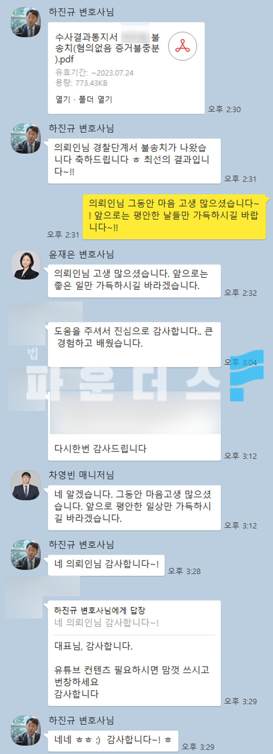 그 결과 의뢰인은 통매음 혐의에 있어 불송치결정 (혐의없음)으로 사건을 마무리 지을 수 있었습니다.