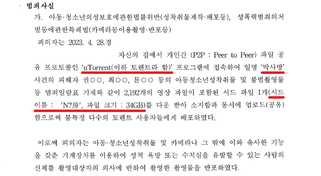 A씨는 2023. 4. 28.경 중국 토렌트에서 'N号房' 시드파일을 다운로드받았습니다.