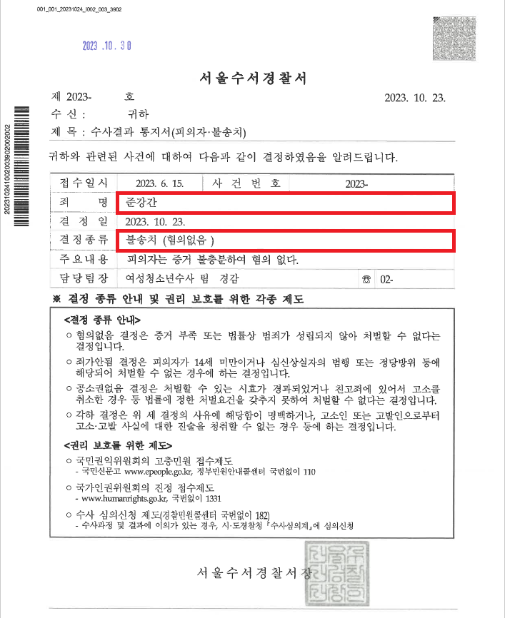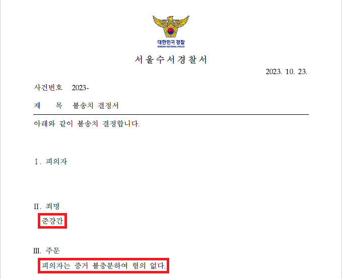 이러한 저의 조력을 바탕으로 A씨는 경찰단계에서 '불송치(혐의없음)' 결정을 받음으로써 일생일대의 위기에서 빠르게 벗어날 수 있었습니다.