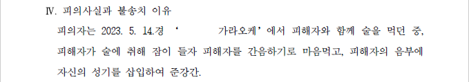 A씨는 2023. 5. 14.경 가라오케에서 파트너로 B씨를 앉혀 B씨와 단둘이 술을 마셨습니다.