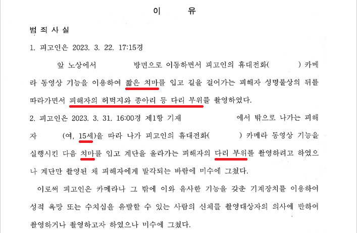 A씨는 2023. 3. 31. 16:00경 PC방에서 나가던 중 어려 보이는 여성 B양을 발견하고 마음에 들어 B양을 뒤쫓아가 B양의 다리 부위를 몰래 동영상 촬영하려고 하다가 적발되어 현행범 체포되어 조사를 받게 되었습니다.