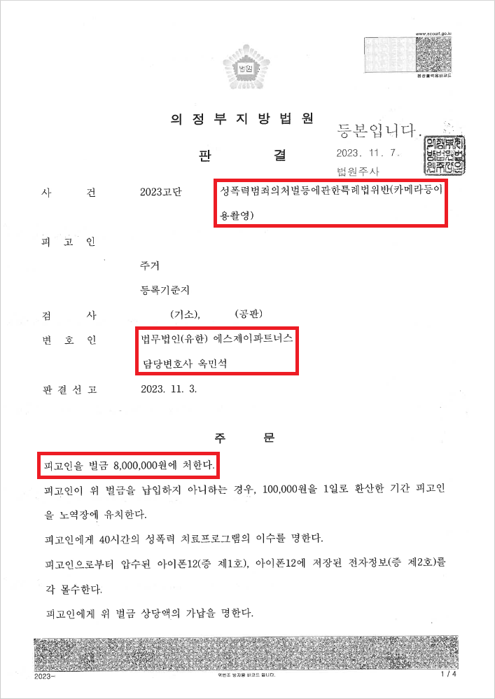 이에 A씨는 자신을 도와줄 변호사를 수소문하기 시작하였고, 결국 불법촬영, 몰래카메라 등으로 불리는 성폭법위반(카메라등이용촬영·반포등) 사건을 다수 수행하며 성공적으로 해결하고 있는 저를 찾아와 도움을 요청하였습니다.
