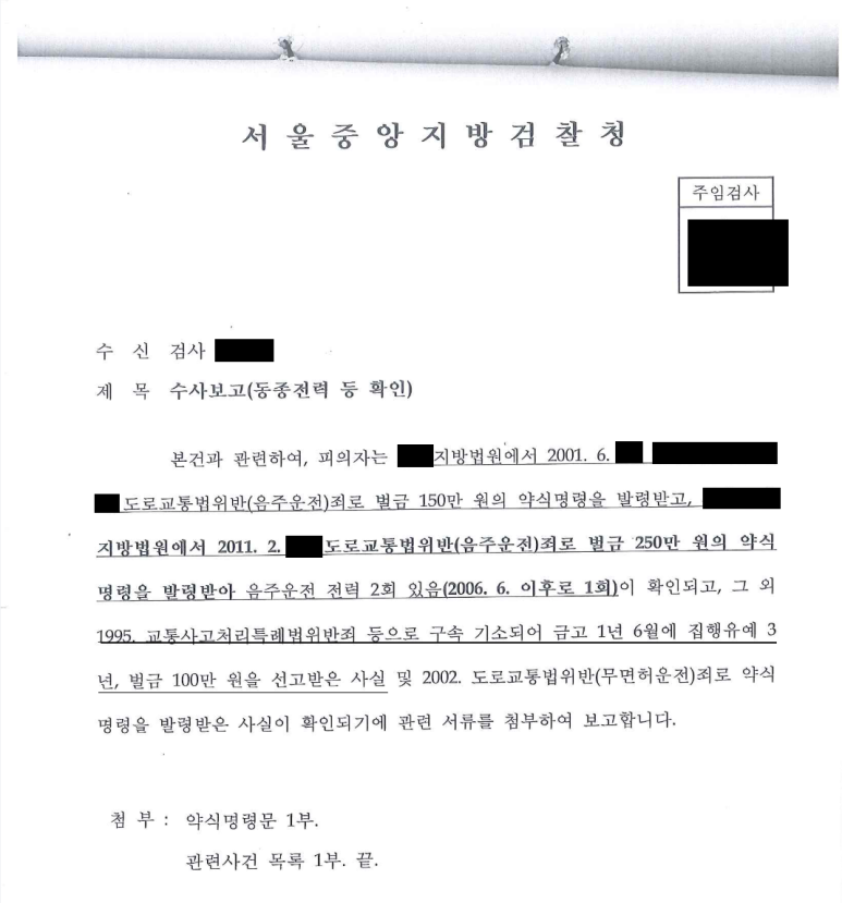 의뢰인은 90년대 중반 음주상태로 운전을 하다가 사망사고를 내어 구속되었던 전력이 있었고 이후 2011년까지 음주운전으로 두 차례, 무면허운전으로 한 차례 각 벌금형의 처벌을 받은 전력이 있었습니다.