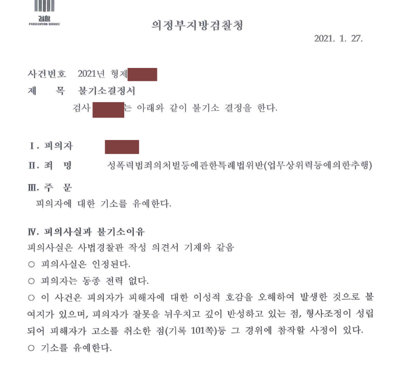 ![[기소유예]성폭력처벌법위반(업무상위력등에의한추행)](/_next/image?url=https%3A%2F%2Fd2ai3ajp99ywjy.cloudfront.net%2Fuploads%2Ftitleimage%2Foriginal%2F5d46f7da101c24536602b1cb-original.jpg&w=3840&q=75)