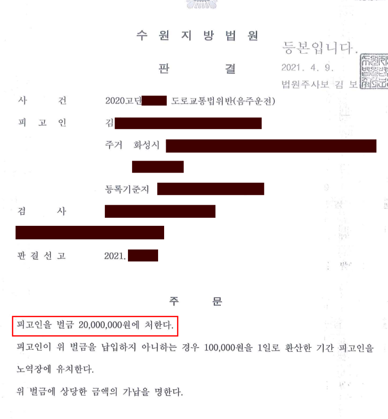이와 같은 노력 덕분에 의뢰인은, 비록 법이 정하고 있는 최고액의 벌금이지만 징역형을 피하고 벌금형으로 자신의 죗값을 치를 수 있게 되었습니다.