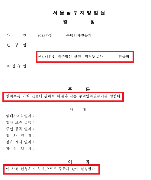 "최근 주택임차권등기명령신청 사건에서 인용결정을 받았습니다"