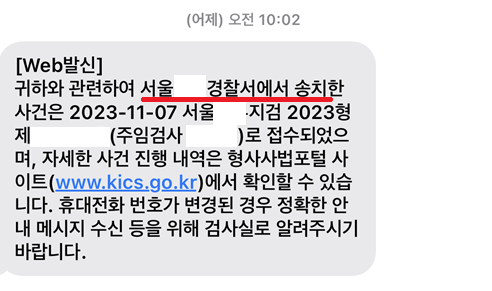 <최근 고소한 사건이 기소 의견 송치된 사례>