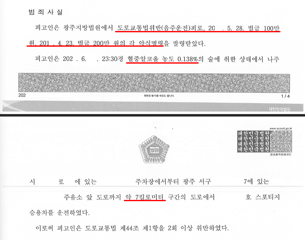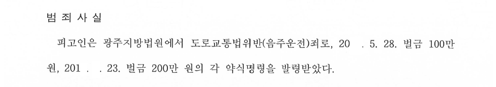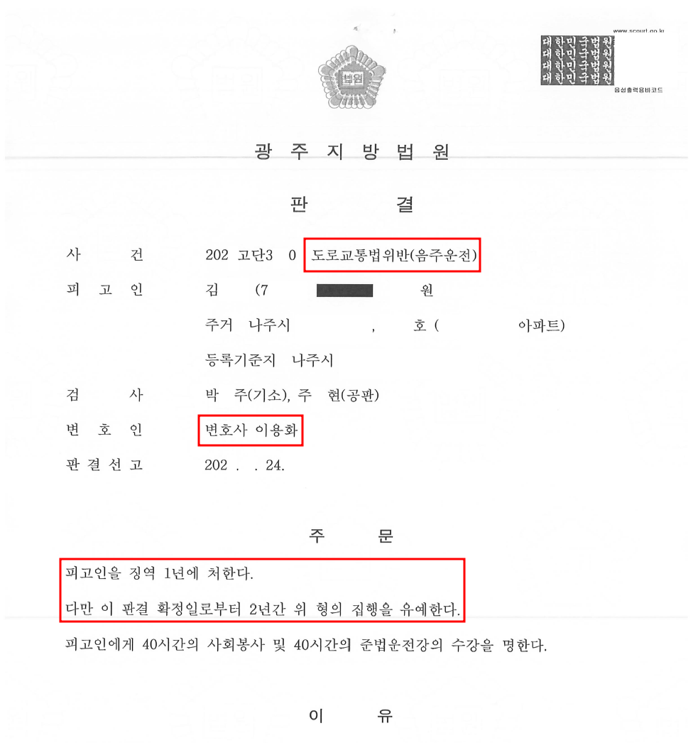 광주지방법원 202ㅁ고단3ㅁㅁ0 도로교통법위반[음주운전]