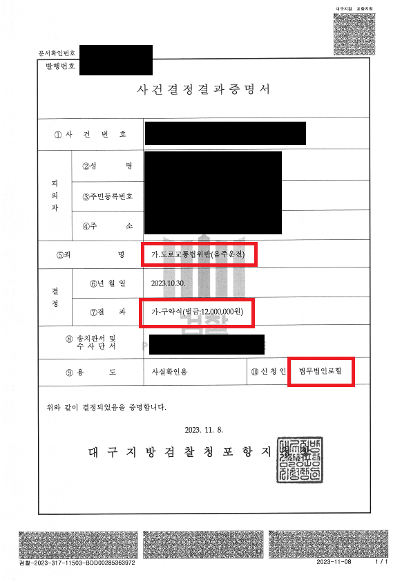 그래서 결국 구약식으로 벌금 처분을 받는 좋은 결과를 받게 되었습니다.