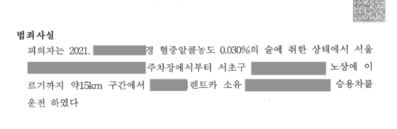 의뢰인은 과거 면허정지에 해당하는 음주수치로 1회 벌금형의 처벌을 받은 바 있었는데, 지인들과 약간의 술을 마시고 운전을 하여 귀가를 하던 중 혈중알코올농도 0.030%로 음주단속에 적발되었습니다.